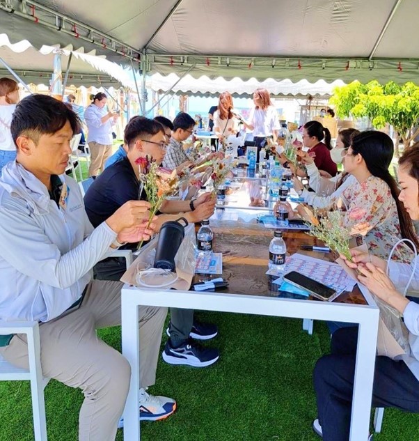 活動中設計有趣聯誼互動遊戲「幸福對對碰」/「情畫大聲說」/「Fun閃狂拍」,增加單身男女破冰互動的機會,甚至邀請花藝老師進行永生花教學, 一朵朵永生花代表真摯永恆的愛情。